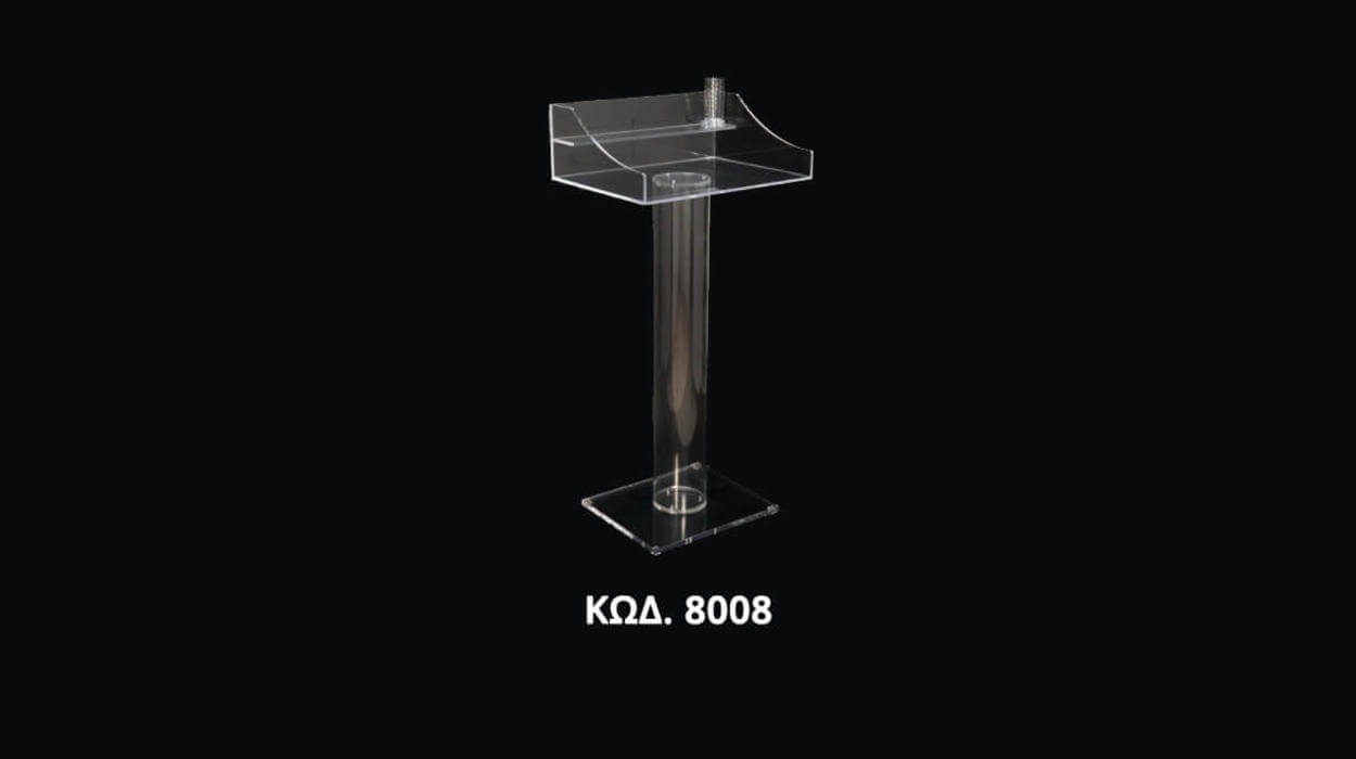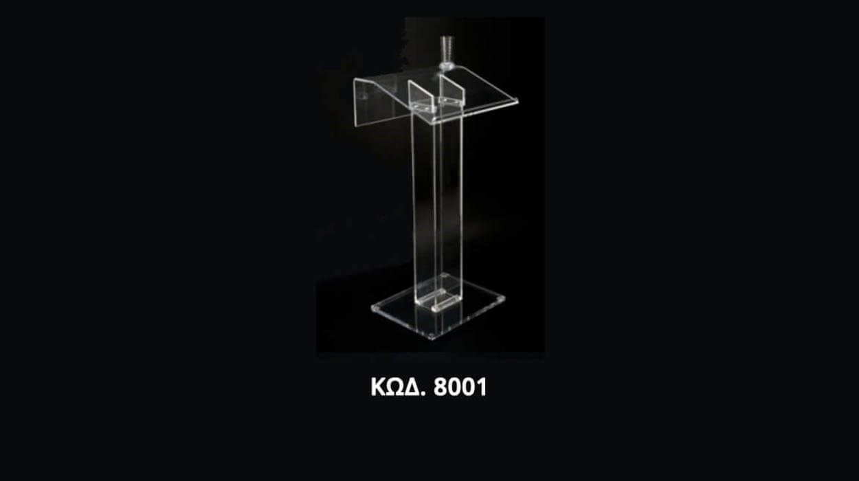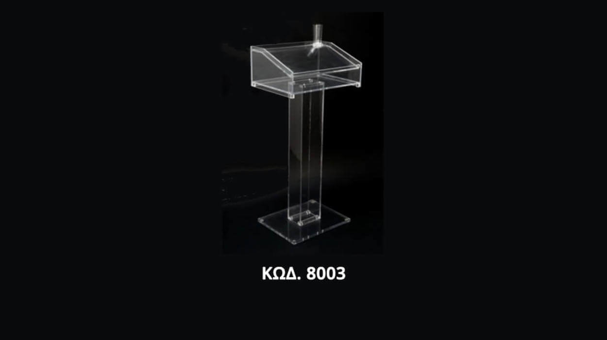 Ακρυλικό Podium διαφανές σε απλό και μοντέρνο σχεδιασμό με υποδοχή για μικρόφωνο. Χρησιμοποιούνται σε ξενοδοχεία, εκθέσεις, συνέδρια.